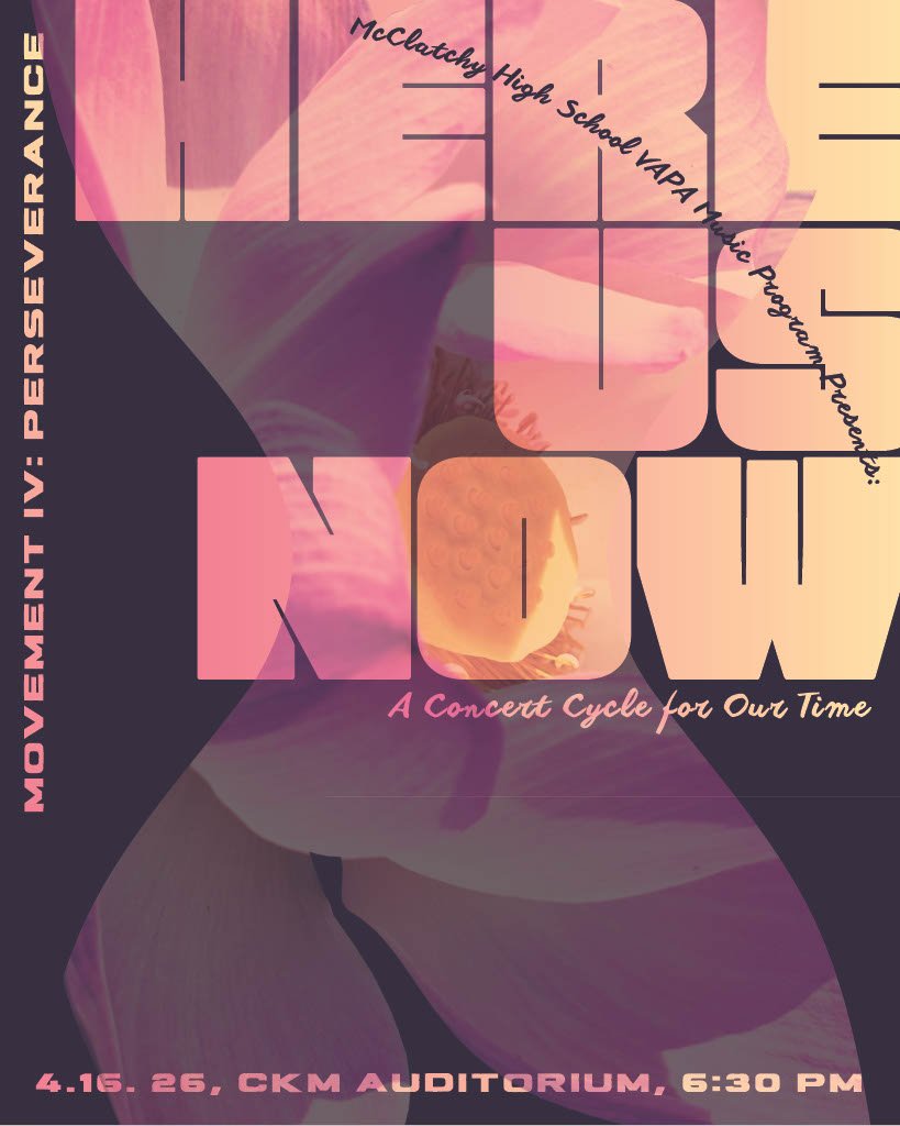 Join us for the fourth and final installment of our concert series Here. Us. Now. entitled Perseverance. The concert will take place in the McClatchy High School Auditorium on Thursday April 16th at 6:30pm.